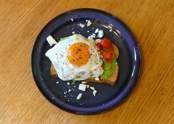 Avocado Toast with Fried Eggs, Tomatoes and Feta Cheese